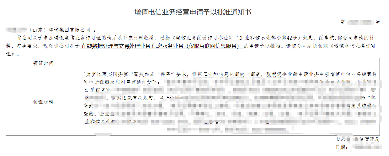 恭喜山东某集团成功申请EDI/ICP许可证